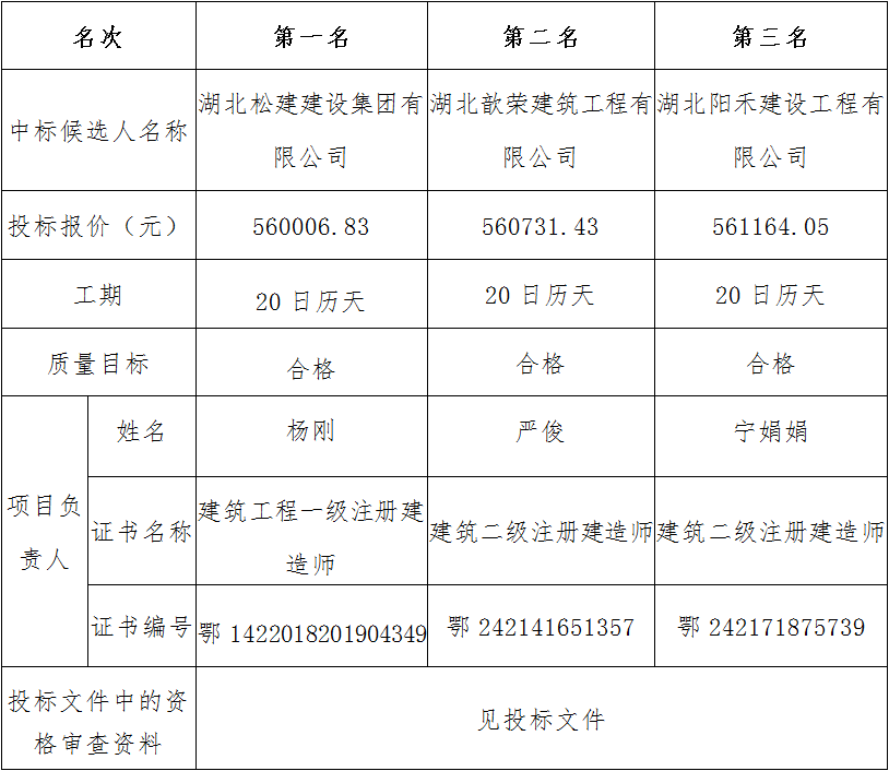金投•青云府围挡工程施工于2025年3月26日发出投标邀请书,2025年4月3日在北京中兴恒工程咨询有限公司开标室开标,并于2025年4月3日完成评标工作,根据评标委员会提交的评标报告,湖北松滋金投置业有限公司已经确认评标结果,现进行评标结果公示。