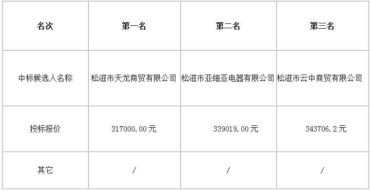 松滋市便民服务中心食堂通风及空调设备安装与采购项目中标候选人公示