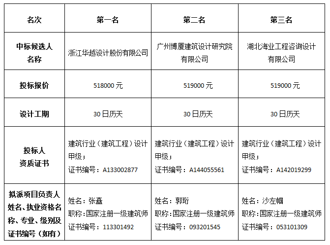 二、中标候选人情况